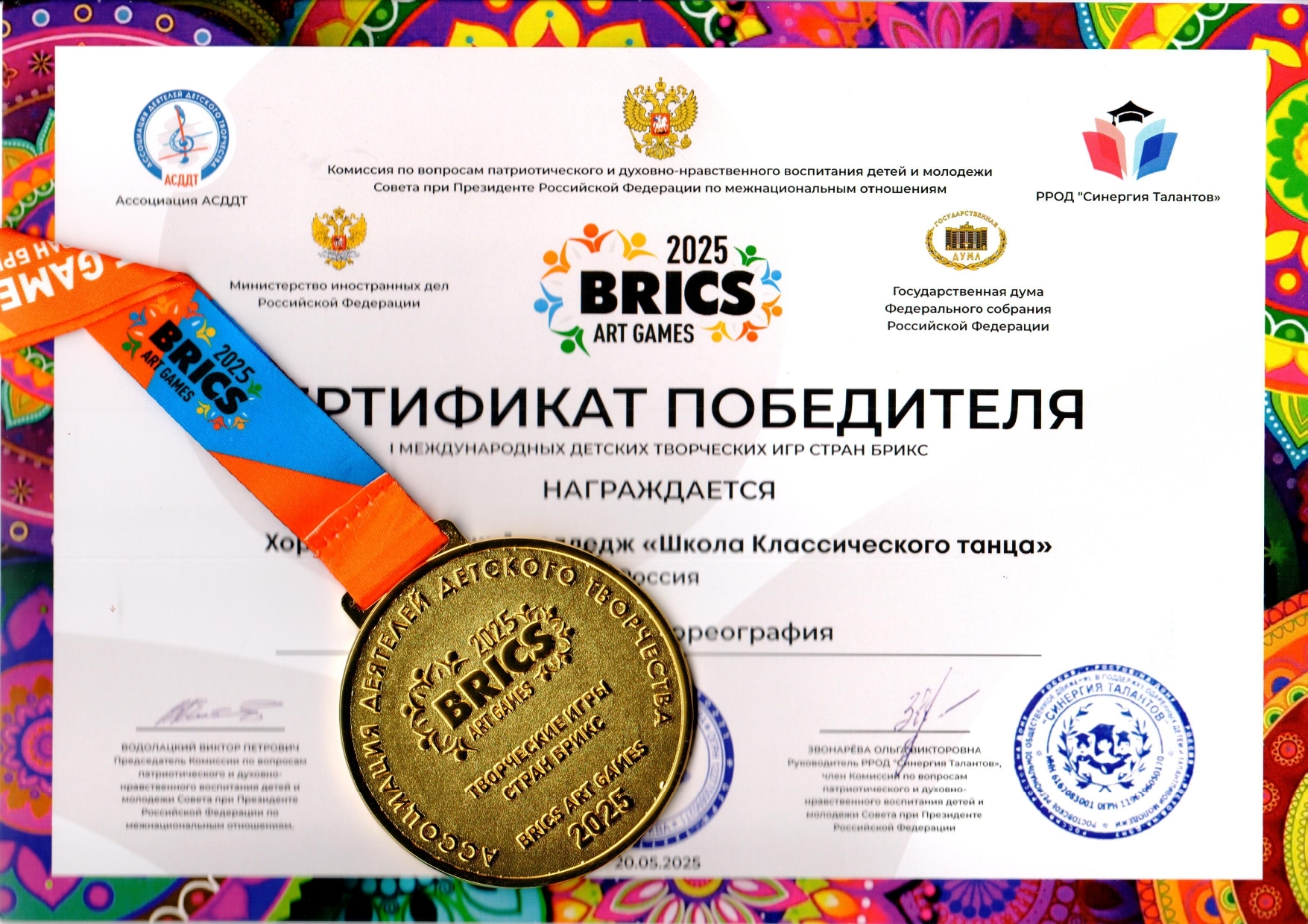 20 мая 2025 года Воспитанники колледжа и Детского балетного театра блистательно выступили с Восточным танцем из балета "Щелкунчик" в постановке Геннадия Ледяха на гала-шоу первых международных детских Творческих игр стран БРИКС.